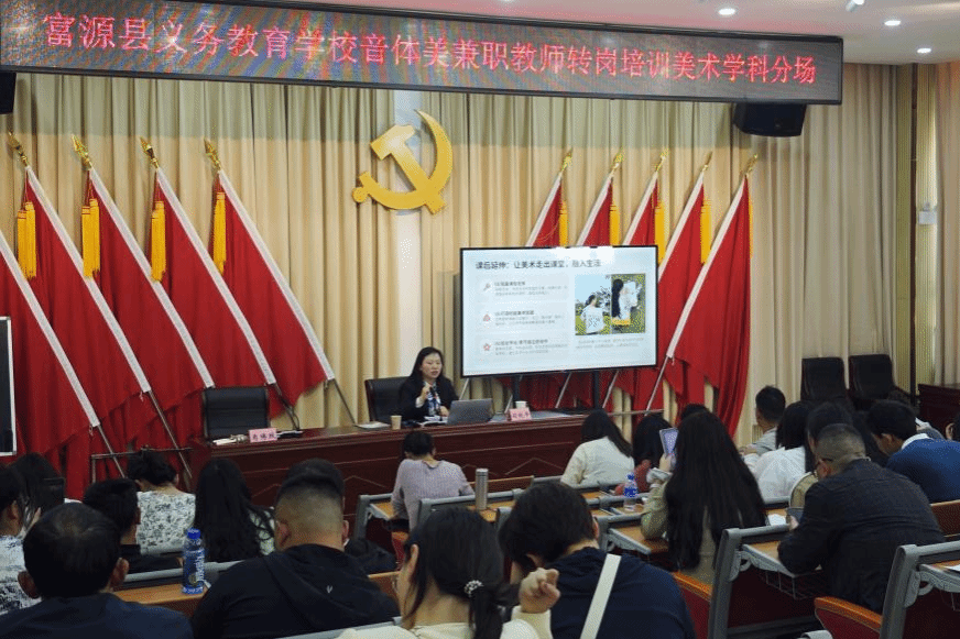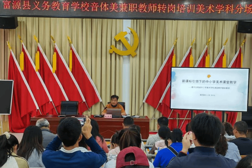 在富源县义务教育学校音体美兼职教师转岗培训中,2025国培优秀学员、省级学科带头人朱兴永老师不但全程参与组织协调,还带来《新课标引领下的中小学美术课堂教学》专题讲座。朱老师立足新课标理念,结合自身丰富的教学实践与本土案例,深入阐述了核心素养导向下的美术课堂转型路径,为兼职教师厘清了教学思路、提供了可操作的方法策略。讲座既有理论高度,又贴近基层实际,有效提升了参训教师的课程理解力与课堂执行力,赢得一致好评。