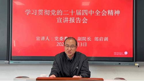 宣讲会上,郎启训副院长首先从党的二十届四中全会的重大意义、会议主要内容和主要精神等方面进行了深入解读。郎副院长强调,党的二十届四中全会是在我国发展新的历史方位上召开的一次具有里程碑意义的会议。会议明确了坚持和完善中国特色社会主义制度、推进国家治理体系和治理能力现代化的总体要求、主要目标、重点任务,为我们新时代的教育事业指明了前进方向。